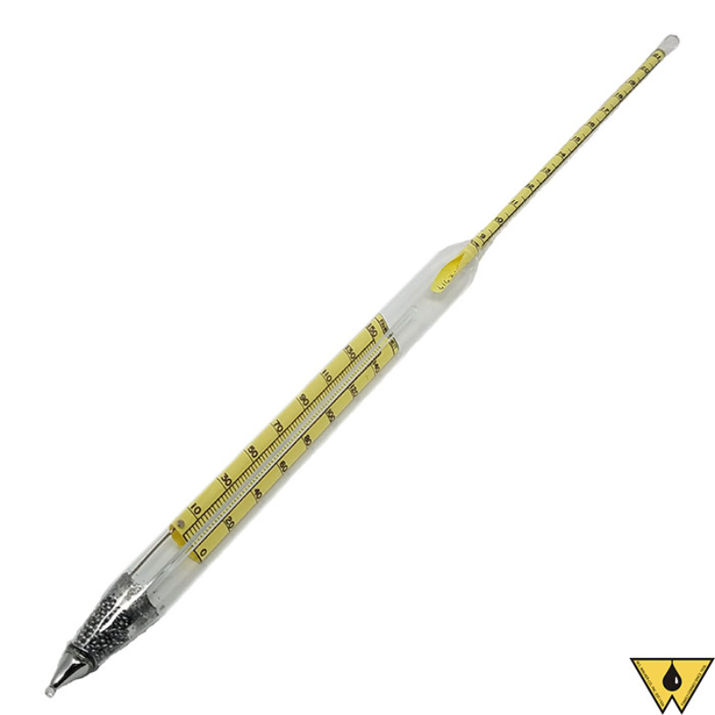 API Chapter 9.3 of the MPMS, ASTM D1298, and E1000. These instruments combine API gravity scale with a thermometer in the body and are the standard and preferred size normally used for determining the gravity of crude oil and other liquid petroleum products, Length approximately 15 inch (374 to 387 mm), diameter ¾ to 1 inch (18 to 25 mm). Thermometer range is 0 to 150°F.
