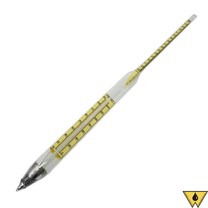 API Chapter 9.3 of the MPMS, ASTM D1298, and E1000. These instruments combine API gravity scale with a thermometer in the body and are the standard and preferred size normally used for determining the gravity of crude oil and other liquid petroleum products, Length approximately 15 inch (374 to 387 mm), diameter ¾ to 1 inch (18 to 25 mm). Thermometer range is 0 to 150°F.