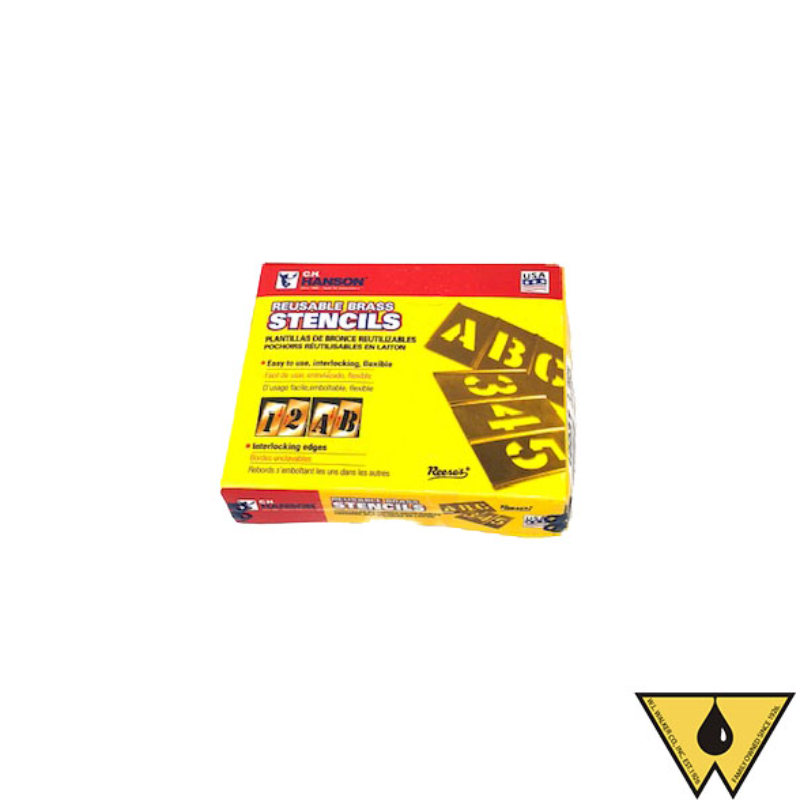 The CH Hanson 2" Brass Stencil Kit is a rugged, reusable solution for clear and consistent marking in demanding industrial environments. Precision-cut from non-rusting brass, this kit includes the full uppercase alphabet (A–Z), numbers (0–9), and select punctuation marks. Each stencil features interlocking edges for quick alignment and straight, evenly spaced layouts.