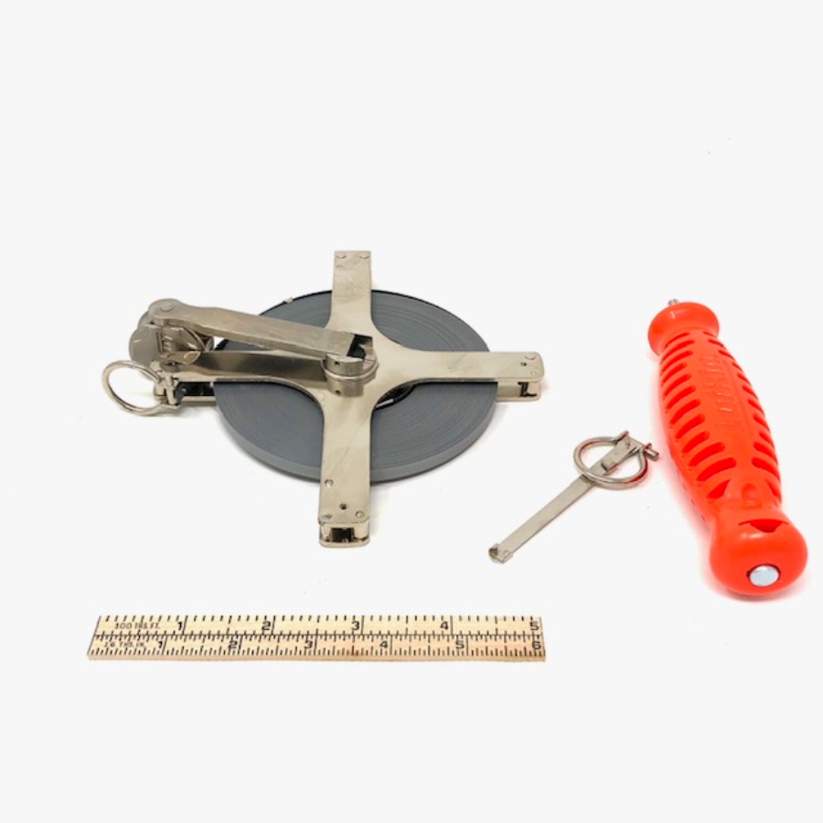 Engineers frame with lock handle. Marked in feet, 10ths and 100ths of a foot. Zero point is at the extreme end of the tape. The WV tape comes with a certificate of verification that it is within tolerances required by API Chapter 3.1.A for Tank Gauging. All strapping tapes can be Walker verified, factory certified, or NIST certified. Please inquire.