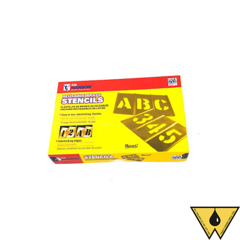 The CH Hanson 3" Brass Stencil Kit is built for tough environments where durability and legibility matter. Crafted from heavy-duty brass, this complete set includes uppercase letters A–Z, numbers 0–9, and essential punctuation—ideal for marking storage tanks, process equipment, piping, tools, and industrial signage.